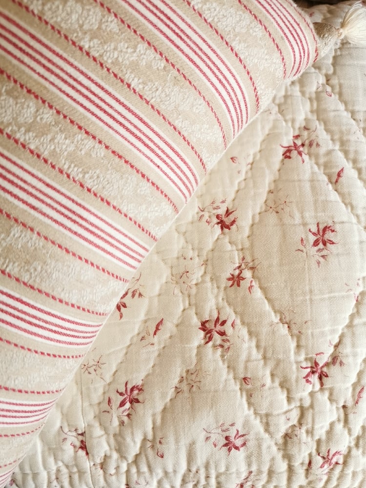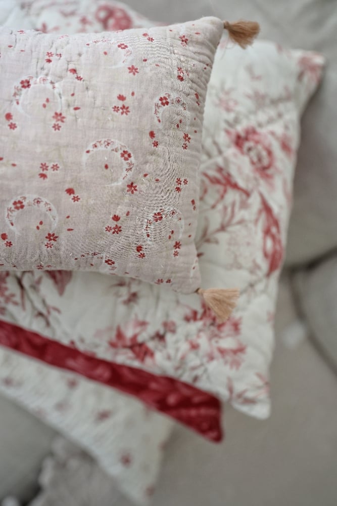 C. Grand coussin en Piqué Fond blanc/Fleurs rouges délicates {C60.11}