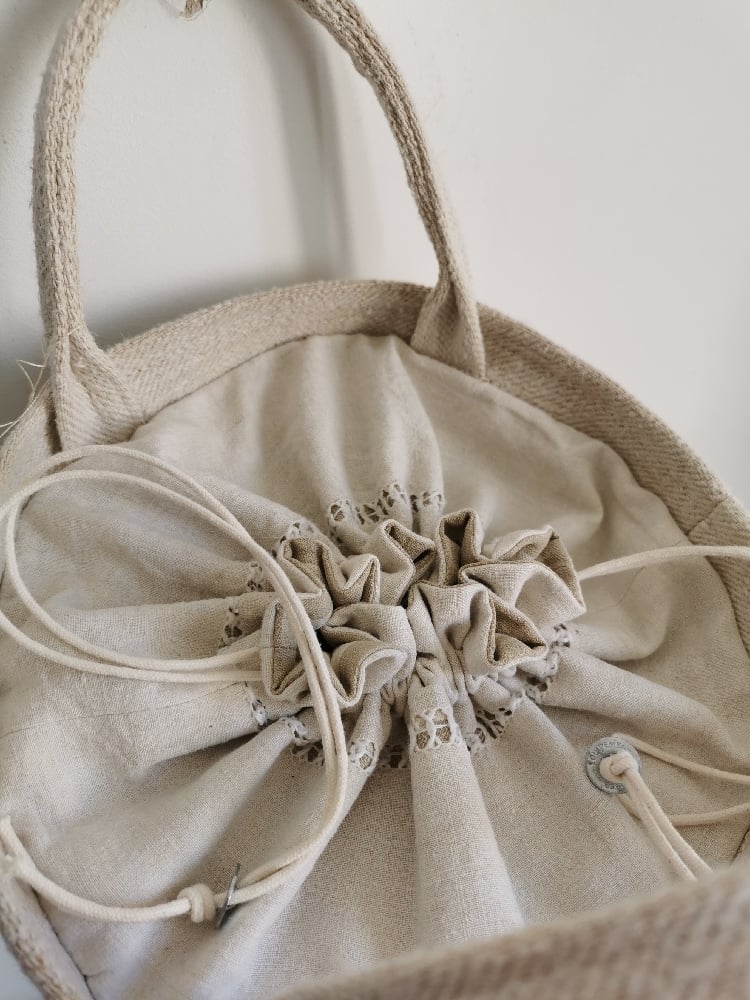 Bandeau de serrage réalisé dans un lin avec jours, doublé une toile à matelas en coton